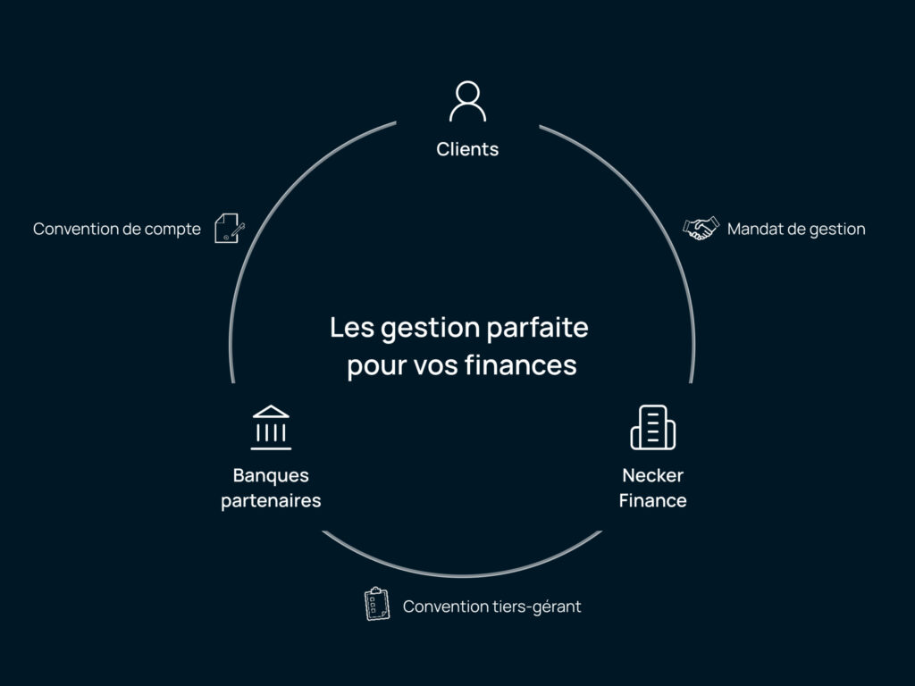 Après une analyse rigoureuse avec son gérant, un profil d’investissement est établi qui correspond à ses besoins. Le client signe ensuite un mandat de gestion ou de conseil qui régit sa relation avec Necker Finance (Suisse) SA. Ce mandat nous autorise à gérer la fortune du client auprès de la banque dépositaire à l’exclusion d’acte de disposition.