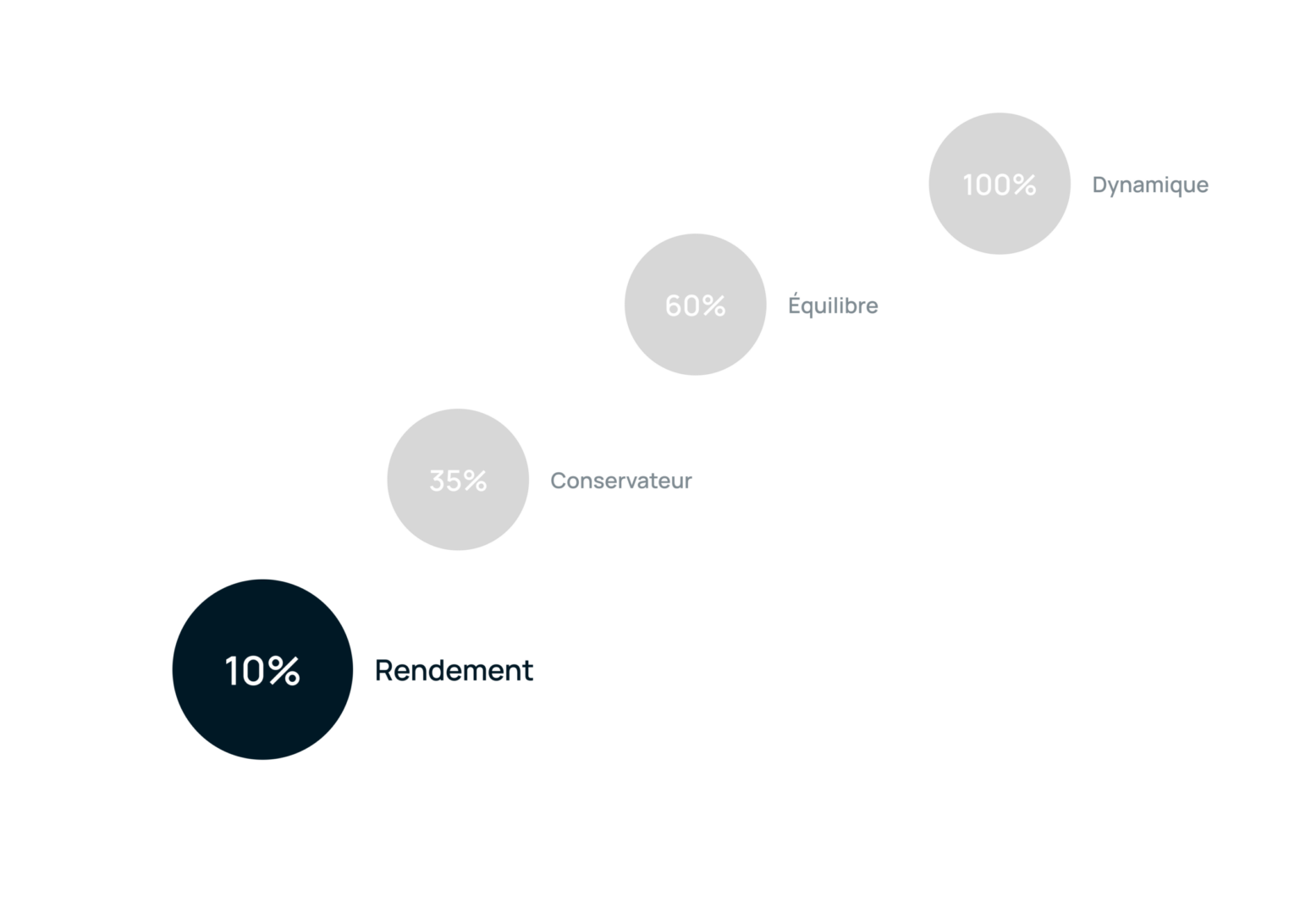 Ce simulateur vous permet d’évaluer le niveau de risque associé à vos investissements. Vous pouvez utiliser cet outil afin de mieux comprendre les différentes stratégies de placement.