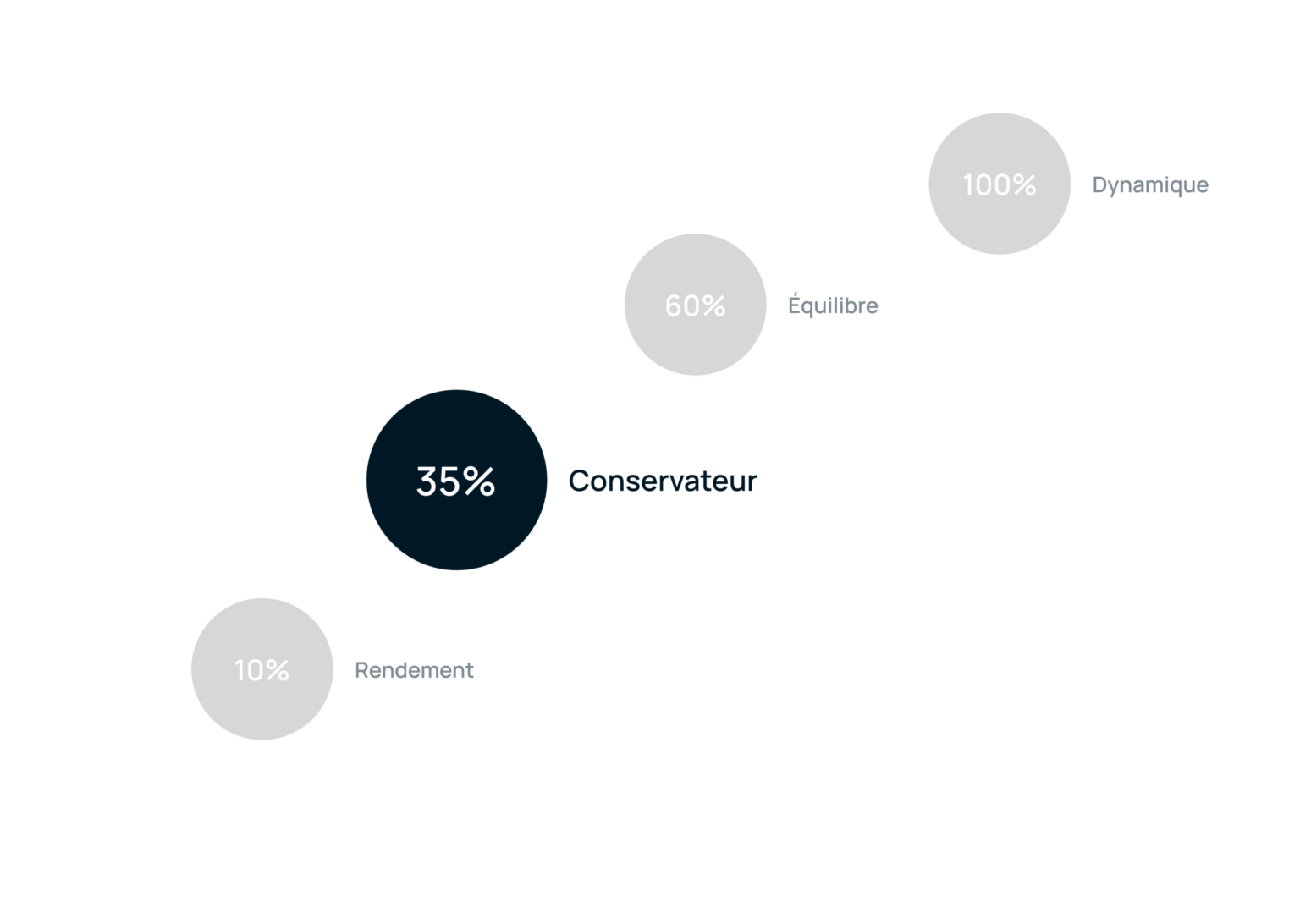 Composé d'un minimum de 90% d'investissements de type revenu fixe (liquidité, obligations, fonds monétaire, produits alternatifs) et d'un maximum de 10% d'actions.