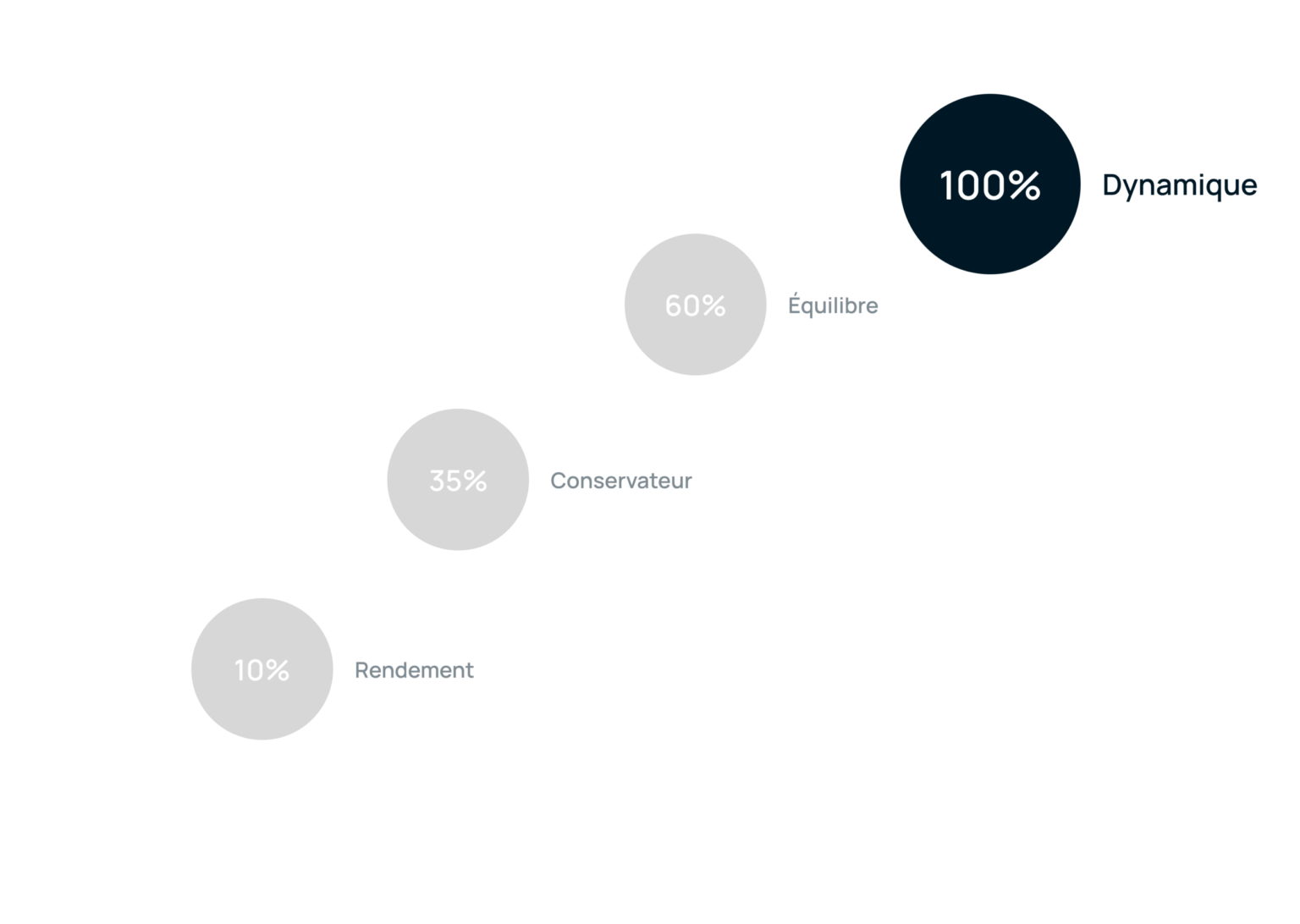 Composé d’un minimum de 90% d’investissements de type revenu fixe (liquidité, obligations, fonds monétaire, produits alternatifs) et d’un maximum de 10% d’actions.